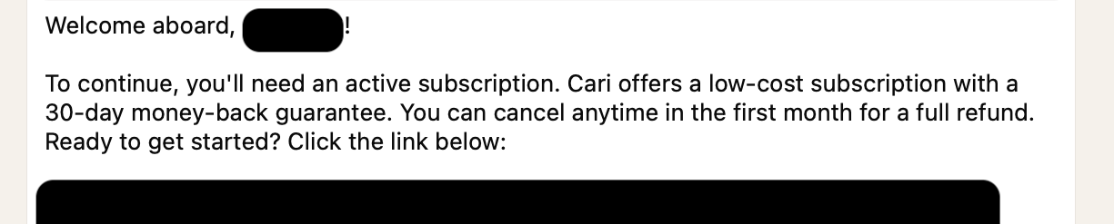 Billing: Unfortunately, WhatsApp only supports integrated payments in Brazil and India, with no plans for broader rollout. To work around this, I built a flow that sends users to an external payment link, then redirects them back to their WhatsApp chat with Cari once payment is done. Webhooks help me track subscription updates and payment issues, so Cari quickly knows if your subscription lapses 😅.